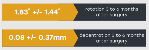 In a prospective study in 66 eyes the RayOne platform showed a high level of rotational stability and centration 3 to 6 months after surgery.
