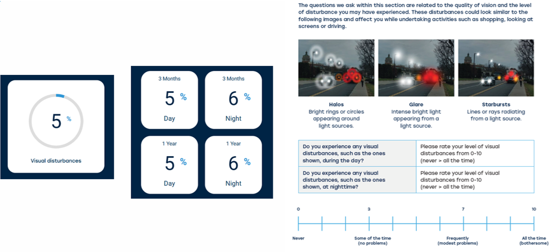 The following questions are asked at three months and one-year post-op. The score is the percentage of patients who gave a negative response (9 or 10) indicating bothersome disturbance