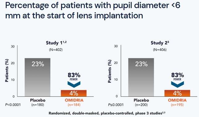 96% of OMIDRIA-treated patients had pupil diameter ≥6 mm at the start of lens implantation.